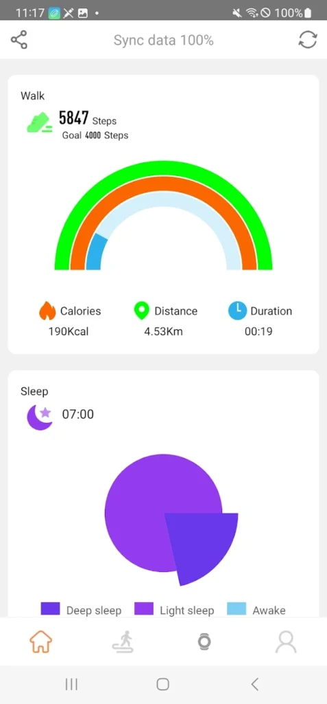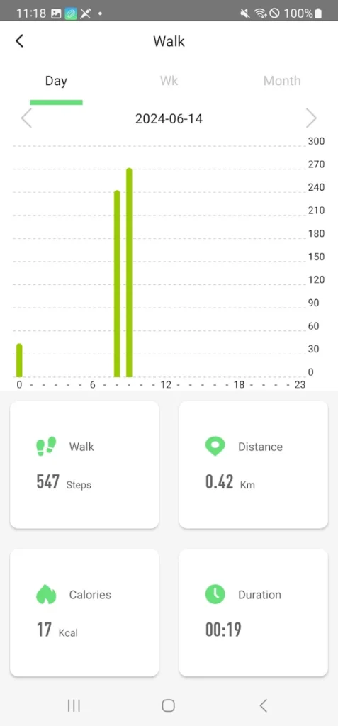 در این بخش میزات فعالیتهای روزمره از جمله راه رفتن یا پیاده وری و همچنین فعالیتهای ورزشی کاربر پایش و ذخیره سازی میشود و اطلاعات مهمی از جمله مدت زمان فعالیت و فاصله طی شده و همچنین میزان کالری مصرف شده اندازه گیری و ذخیره سازی میگردد و در قالب نمودار نمایش داده میشود.